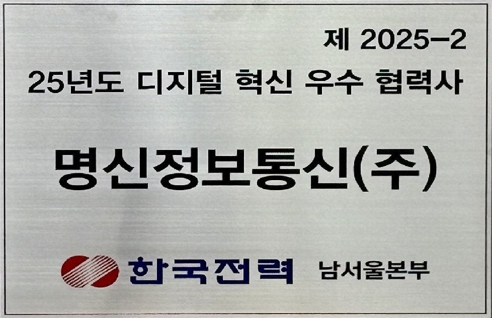 한국전력_ 25년도 디지털 혁신 우수 협력사 _명신정보통신(주) 페이지 정보 작성자 관리자 작성일25-10-17 16:01 관련링크 다음글 목록 본문 한국전력 남서울본부 25년도 디지털 혁신 우수 협력사 선정 다음글 목록